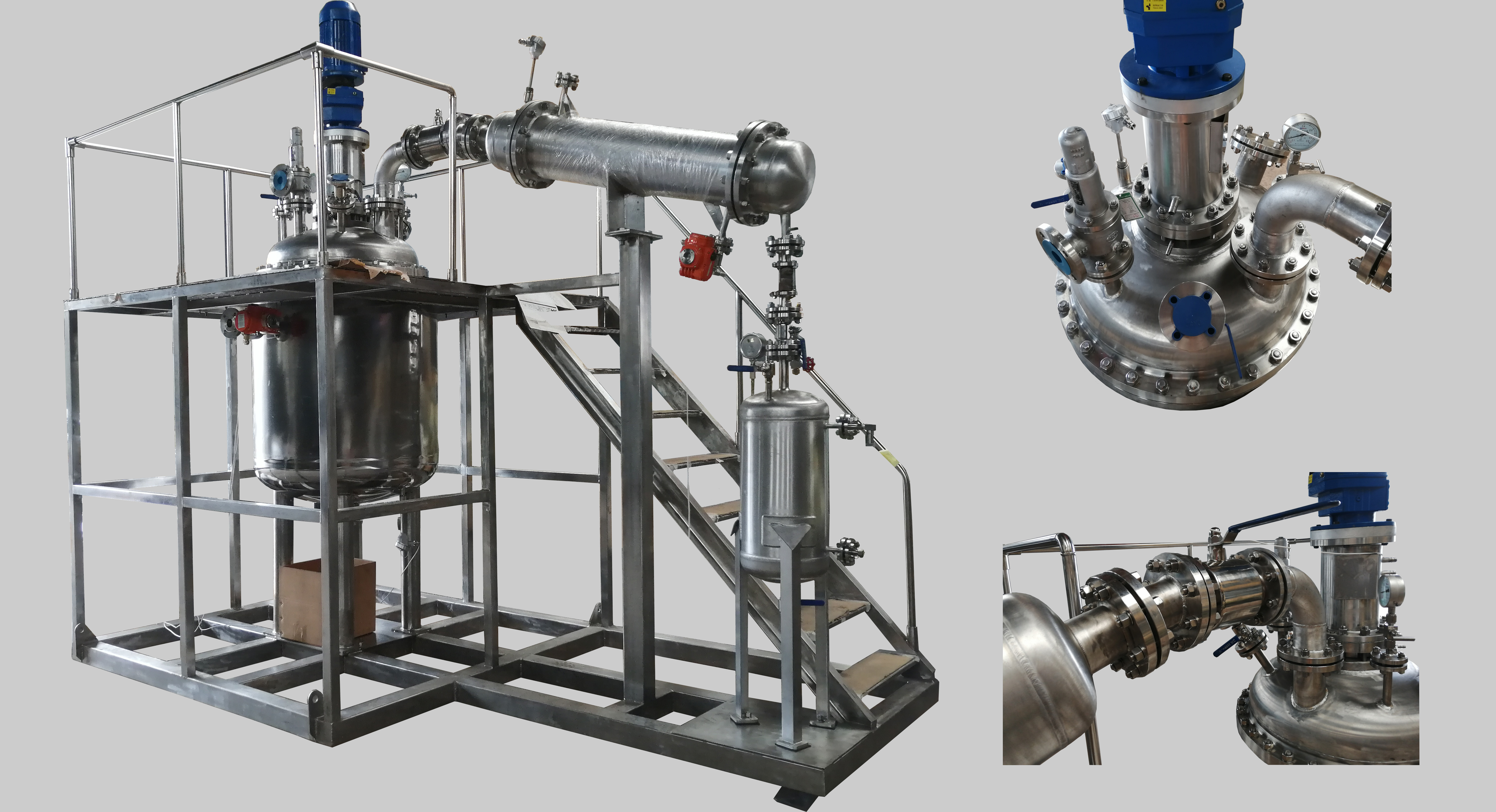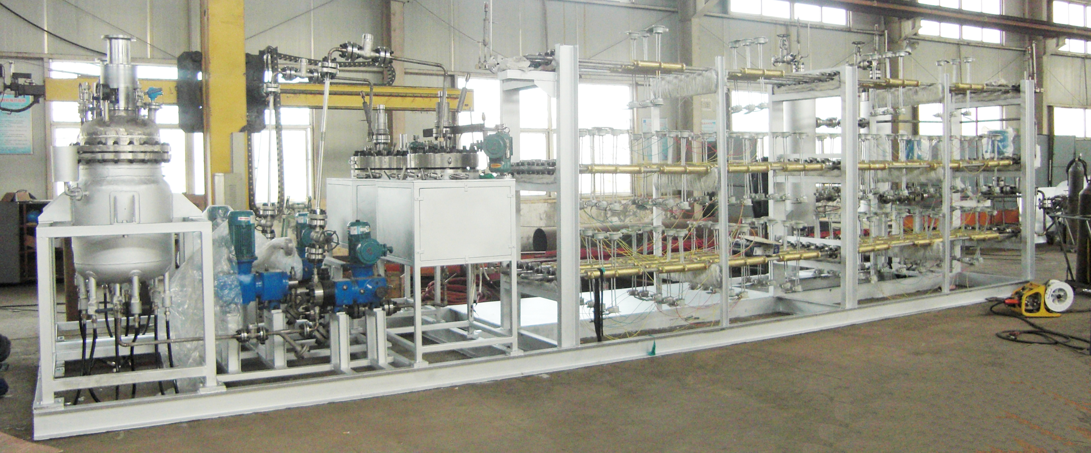 加氫反應(yīng)分為吸熱反應(yīng)和放熱反應(yīng),有些加氫反應(yīng)在反應(yīng)過程中會釋放大量的熱能。為了生產(chǎn)安全,并及時降低釜內(nèi)溫度,有些工藝要求釜內(nèi)配大面積的冷卻盤管。此時單層冷卻盤管無法滿足工藝要求,需要雙層或更多層盤管有效及時降溫。正威機械生產(chǎn)的6層盤管內(nèi)配吸氫攪拌槳,加…